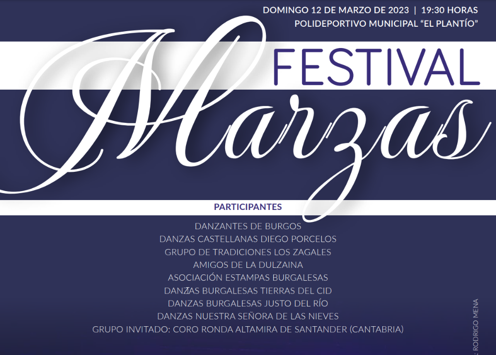 Con motivo de la celebración de la tradicional ronda y canto de las Marzas se organiza y patrocina desde la Gerencia Municipal de Cultura y Turismo del Ayuntamiento de Burgos y con la dirección artística y coordinación del Comité de Folclore Ciudad de Burgos este domingo día 12 de marzo de 2023 tendrá lugar a las 19:30 horas en el Polideportivo Municipal El Plantío el Festival Marzas.
