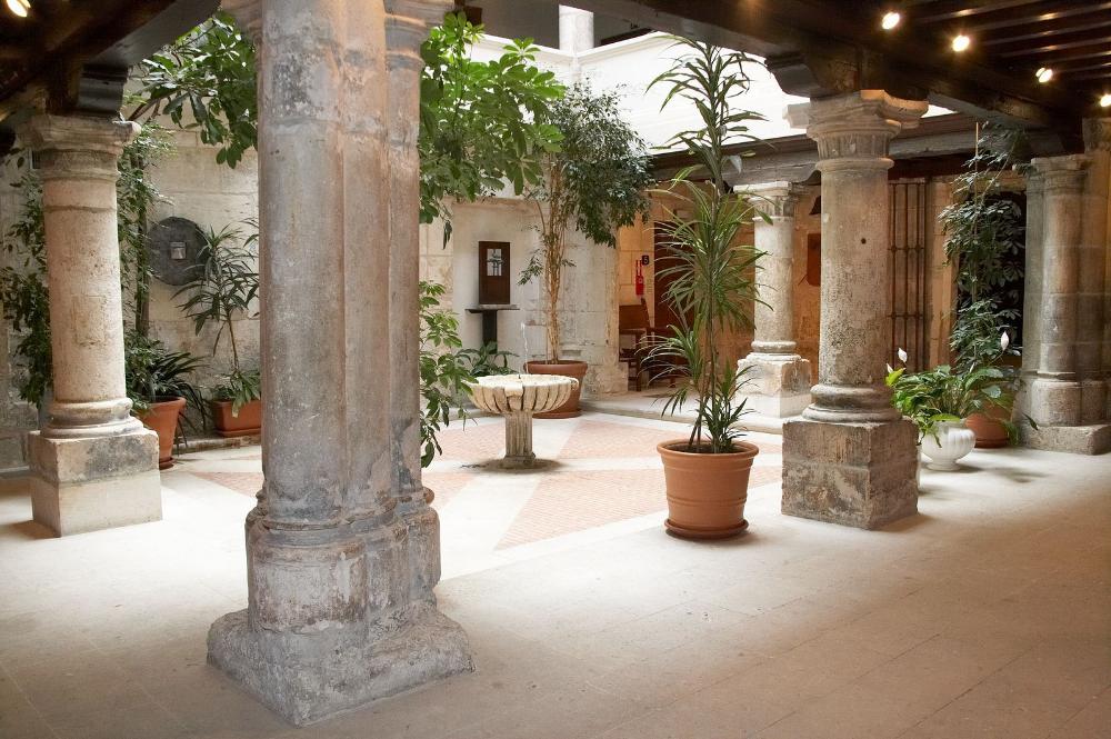 El patio central está sustentado en tres de sus cuatro lados por soportes de piedra sobre las que descansan grandes zapatas de madera que sustentan los techados. En el centro del mismo, existe una fuente, que se corresponde con el primitivo pozo del palacio.