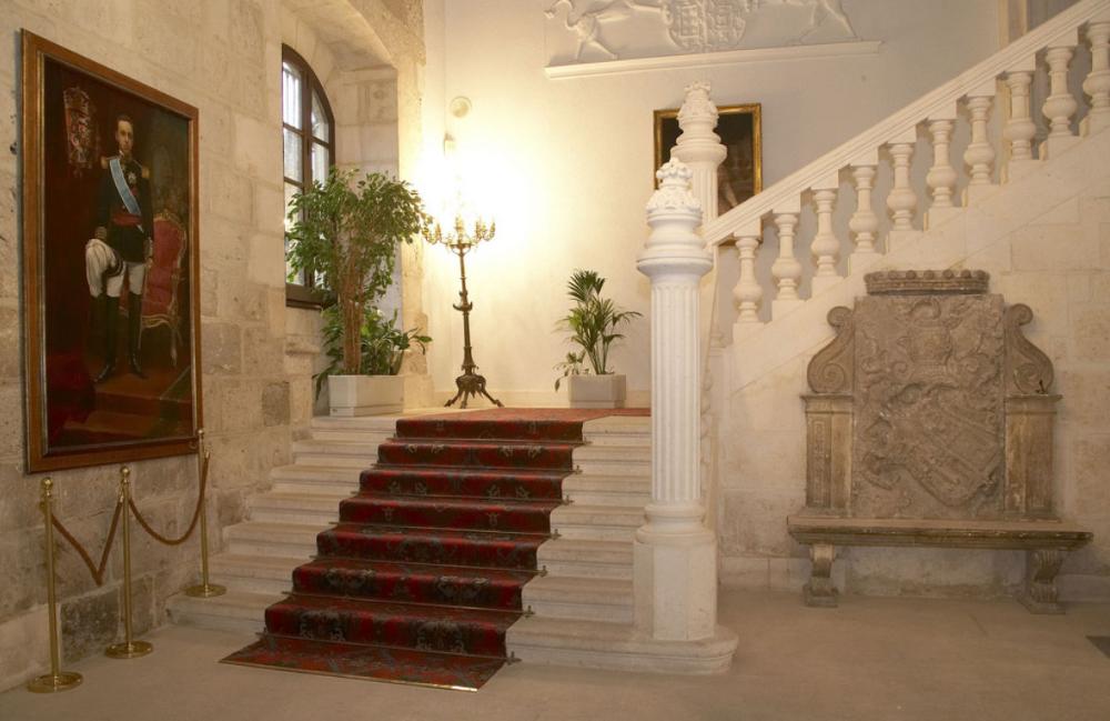 El segundo piso del palacio se corresponde con las antiguas las salas nobles: el corredor, los salones y el oratorio. A lo largo de las mismas, encontramos numerosos ejemplos de arte mueble de distintas épocas: desde cuadros de importantes pintores burgaleses (Marceliano Santa María, Isidro Gil, Dióscoro de la Puebla...), hasta un arca de caudales de hierro, de estilo flamenco y con tres cerraduras de seguridad, pasando por un barqueño de madera noble con incrustaciones metálicas y de concha. Toda una muestra del suntuoso interior de un palacio remodelado a comienzos del siglo XX que ha podido mantener su magnificencia a lo largo del tiempo.