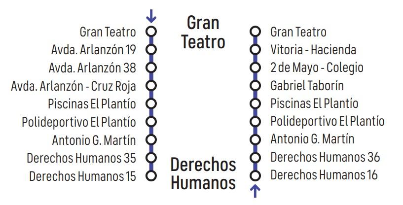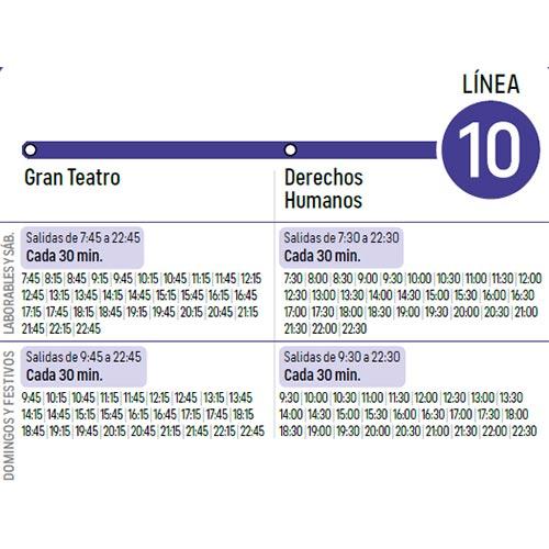 Línea 10: Gran Teatro - Derechos Humanos. Itinerario Icono Mapa Consulta el Itinerario en Directo Horario Documents LINEA_10.pdf (pdf 24,3 kB)