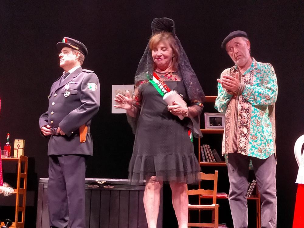 «Aquí no pasa nada» es la adaptación de la obra de Pedro Herrero «Balada de tres inocentes» que ha realizado el Grupo de Teatro Cartel de Aranda de Duero. En ella, se narran las peripecias en las que se ve envuelto un cura de pueblo, un tanto retrógrado, que espera con ansia la visita del señor obispo que le va a examinar para ascender en el escalafón eclesiástico. Todo debe estar en perfecto estado; pero, un imprevisto hace que nada resulte como se esperaba…