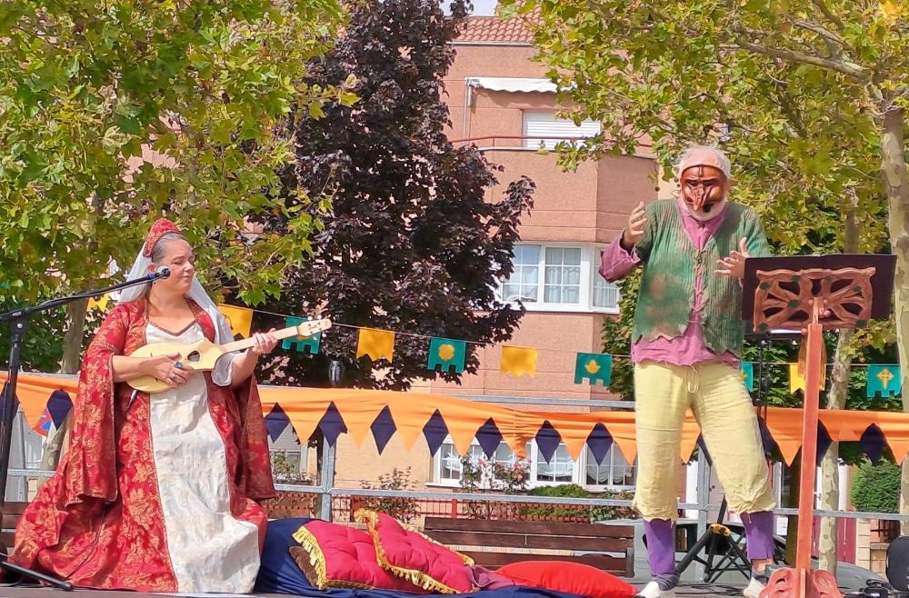El dúo formado por Estrella García y Carlos de la Torre son “Prima voce”, juglares, cantantes y poetas que recorren la floreciente tierra castellana para esparcir sus versos y sus tonadas con la esperanza de iluminar las sonrisas del público. En esta función declamarán, contarán y es cantarán sobre “El arte de la corte”. Con esta propuesta ganaron el primer premio del Concurso de Juglares de la Semana Cidiana de Burgos de 2024.